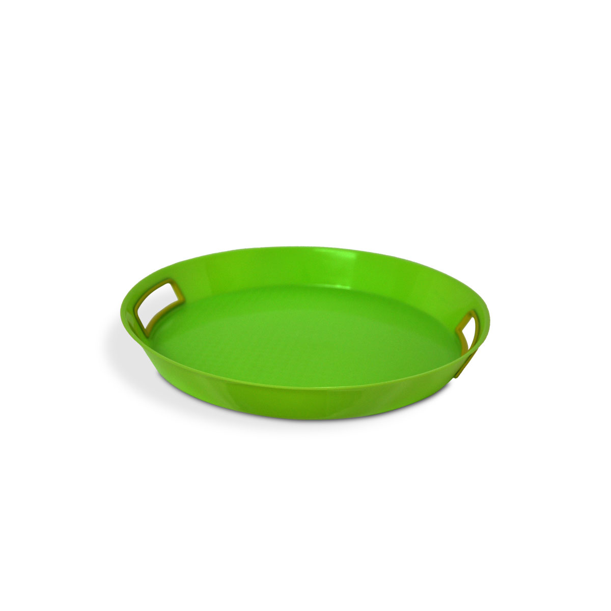 Bandeja redonda plástica con asas. Diámetro: 37 cm.