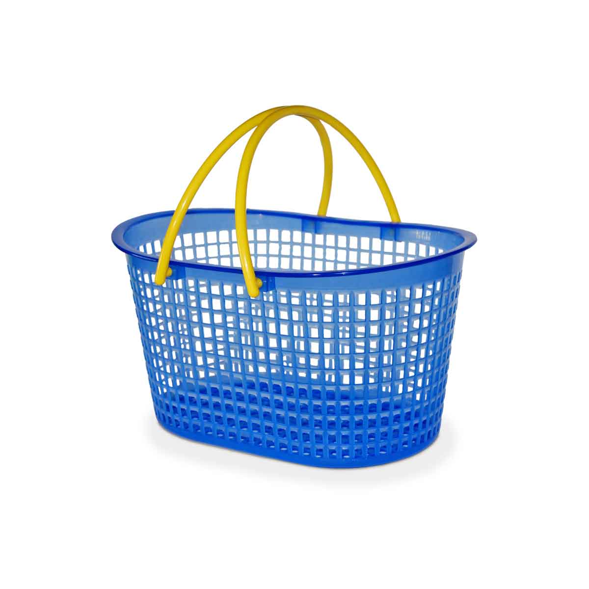Canasto calado plástico oval con manijas. Práctico para transportar.