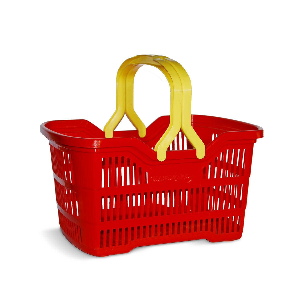 Canasto calado plástico rectangular con manijas. Práctico para transportar.