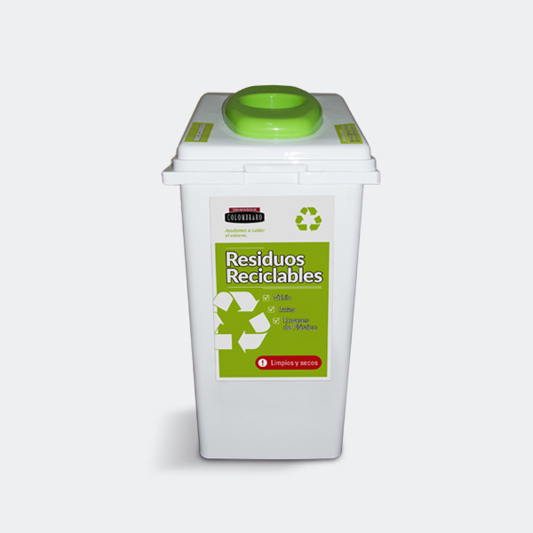 Recipiente adosable, tapa especial con cavidad para depositar residuos reciclables Capacidad: 60 Lts.