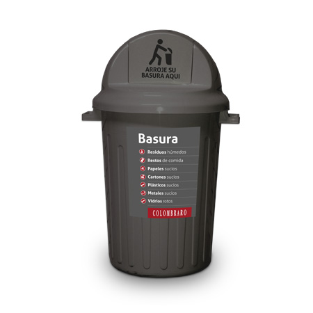 Recipiente de gran tamaño redondo con tapa Spring. Capacidad: 100 Lts. Ideal para edificios y espacios públicos. Consulte por variedad de colores para reciclaje.