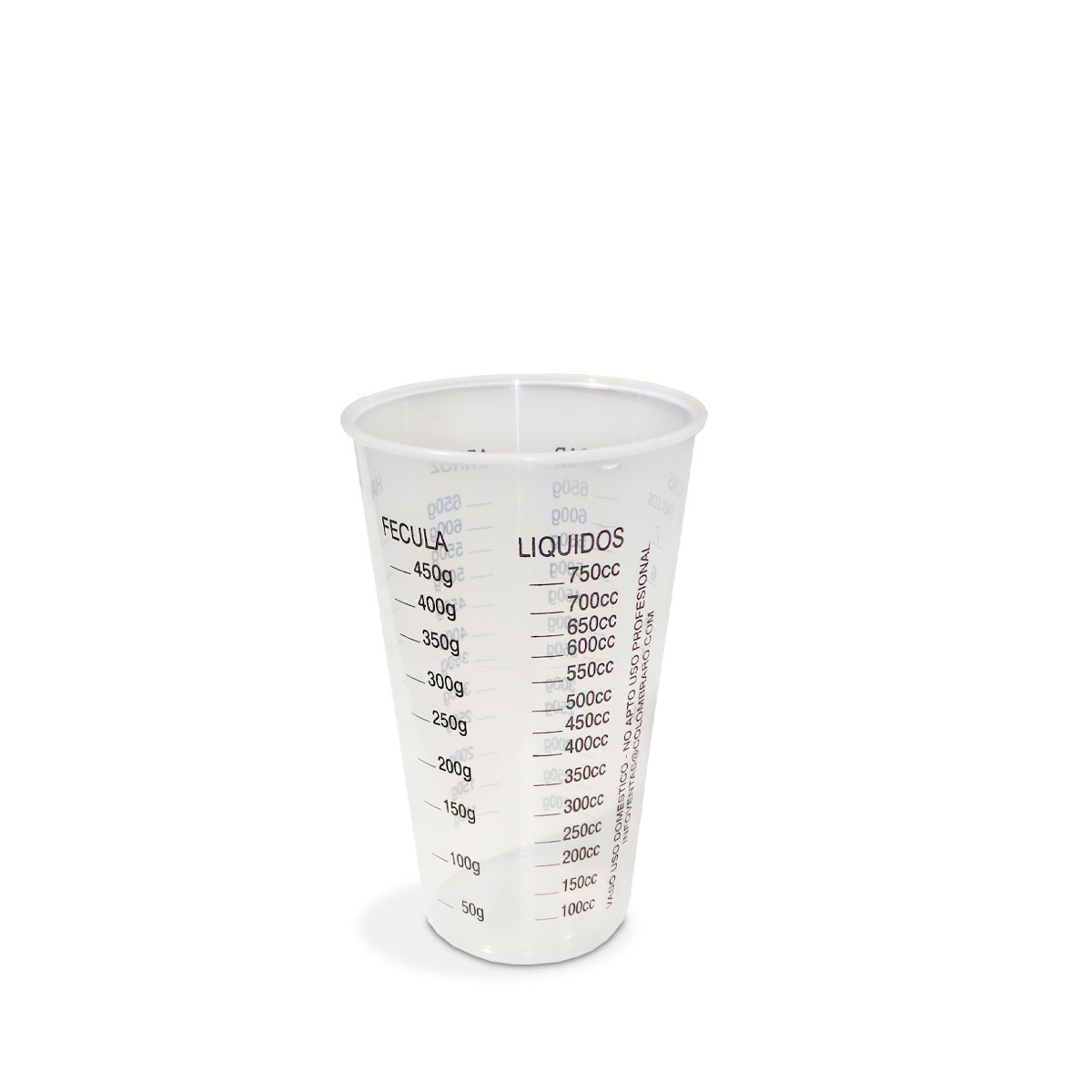 Vaso de plástico medidor. Para hacer tus preparaciones más exactas nada mejor que un vaso medidor, donde no sólo podes medir los líquidos, sino también los solidos.