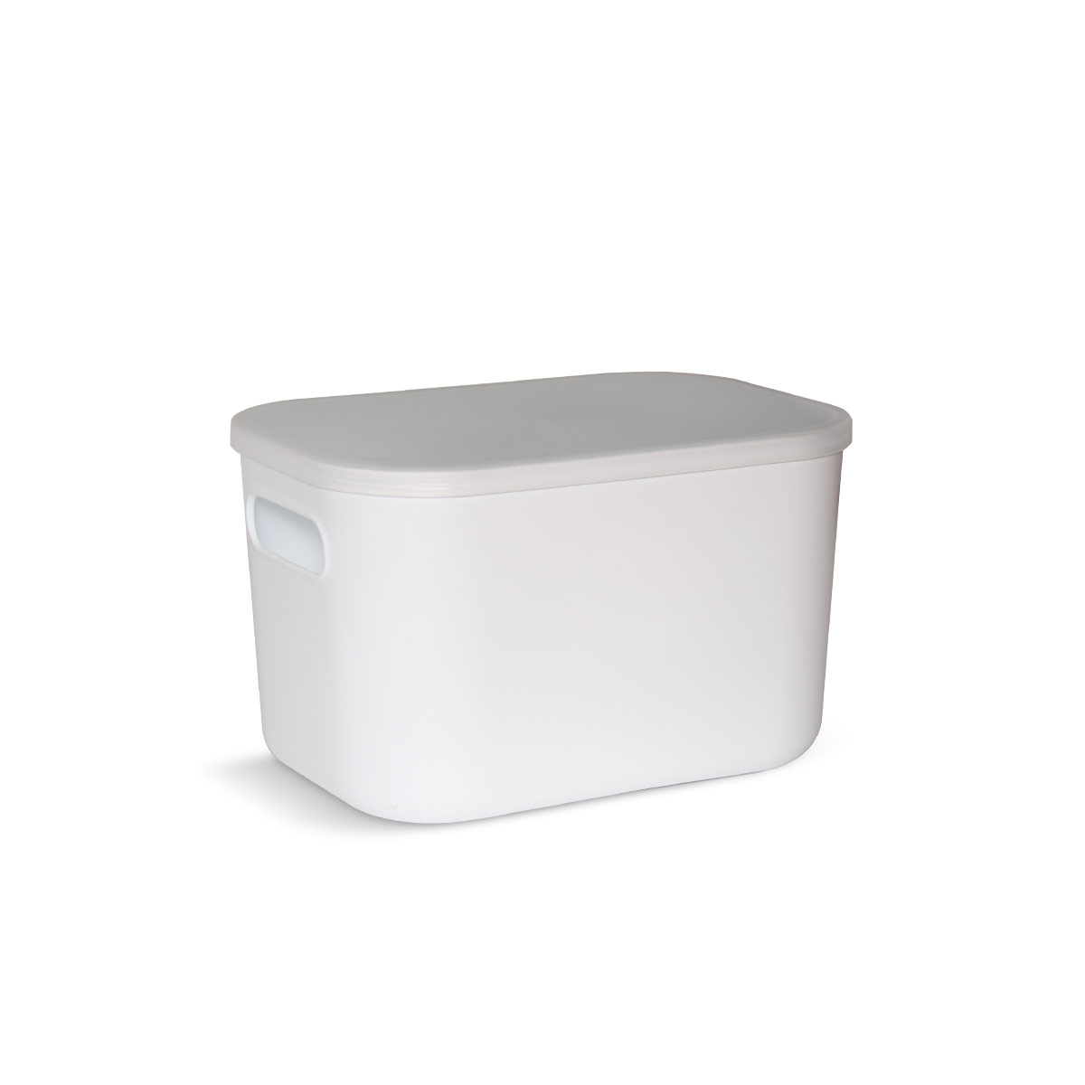 Caja Top Chica de color pleno, con tapa traslúcida. Con agarres laterales.