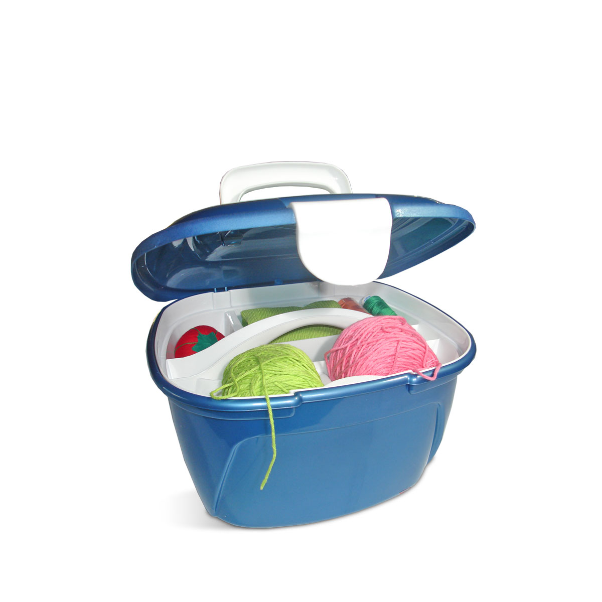 Maletín organizador con compartimentos y manija.
