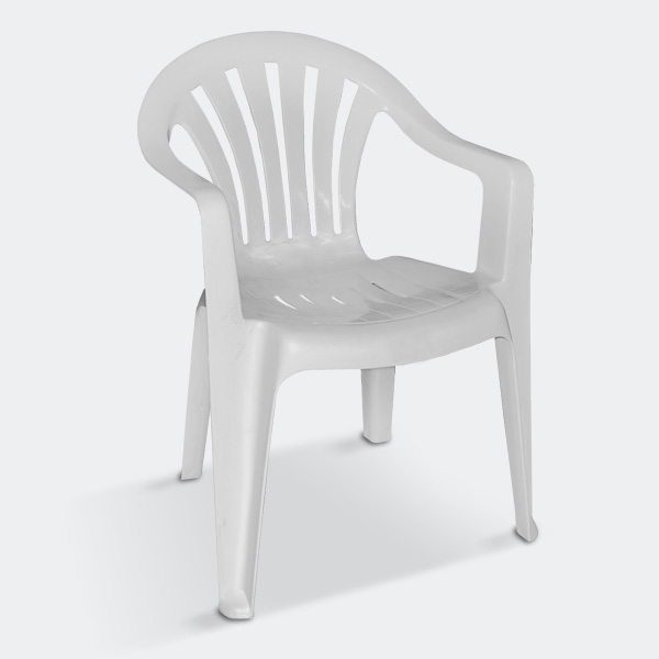 Silla con apoyabrazos, de fácil guardado por ser apilable.