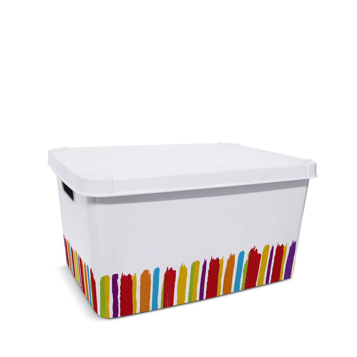 Caja con tapa y agarres laterales, decorada. Capacidad: 20 Lts.
