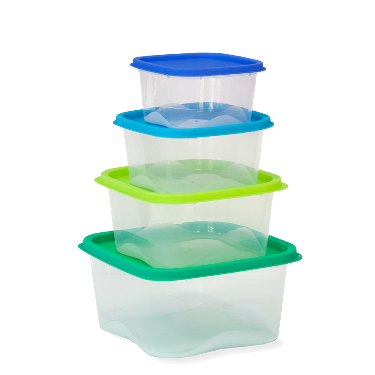Set x 4 contenedores Cuadrados. Tapas Multicolor (Compuesto por contenedores Nro. 3/4/5/6):