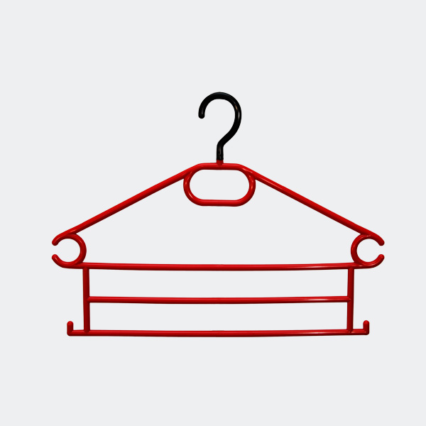 Percha con gancho giratorio y escalones para guardar u organizar muchas prendas en una sola percha.