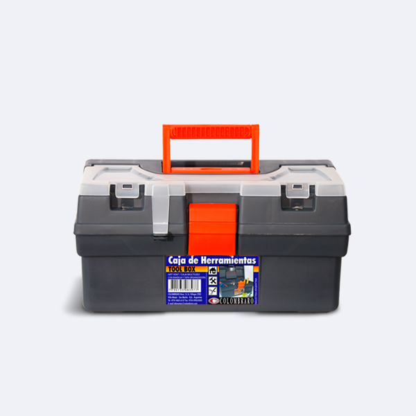 Caja de herramientas plástica con manija y traba reforzada. Cuenta con organizador en la tapa.