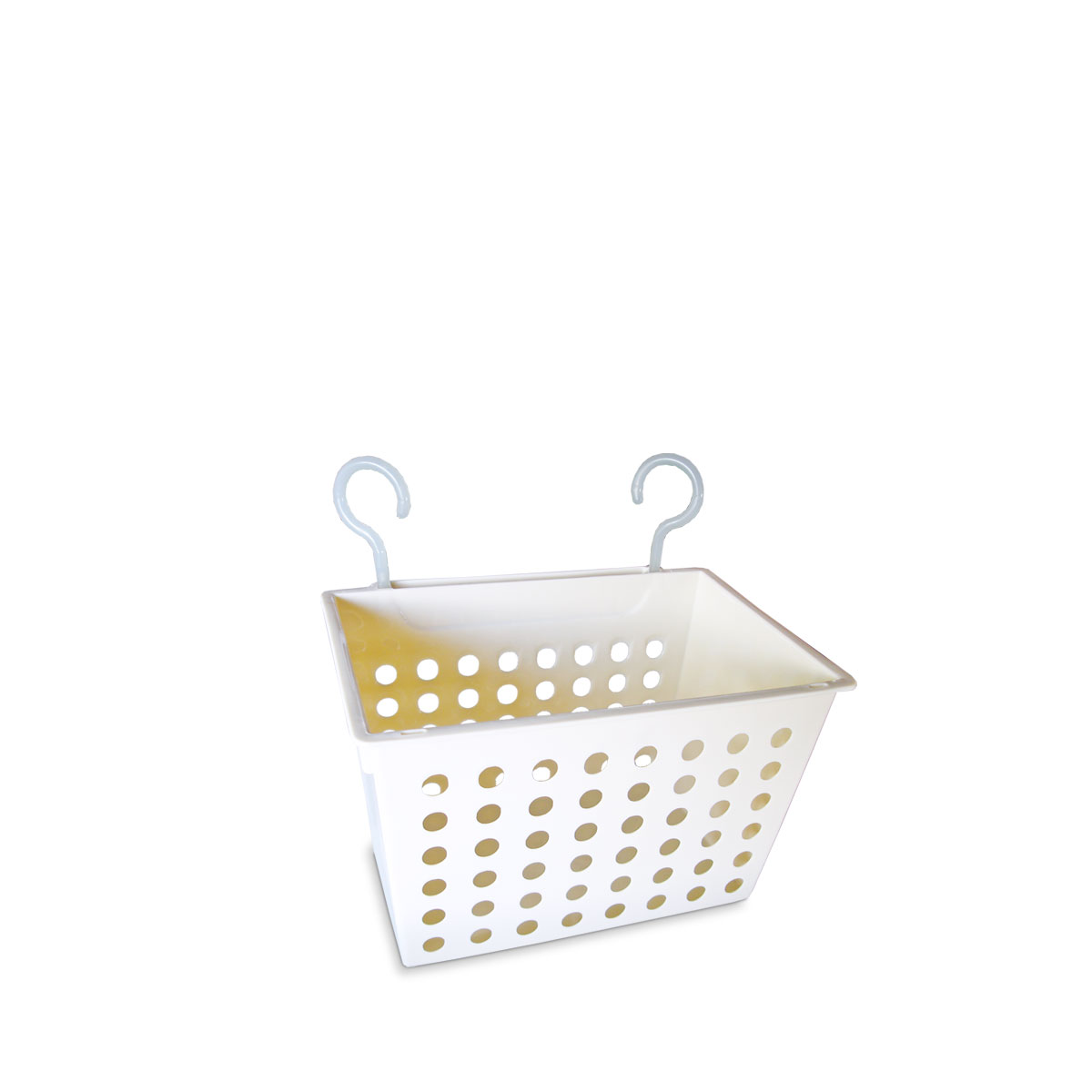 Cesto calado plástico con colgantes traseros.