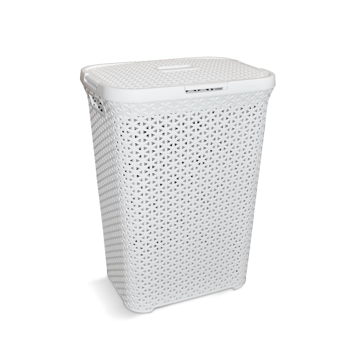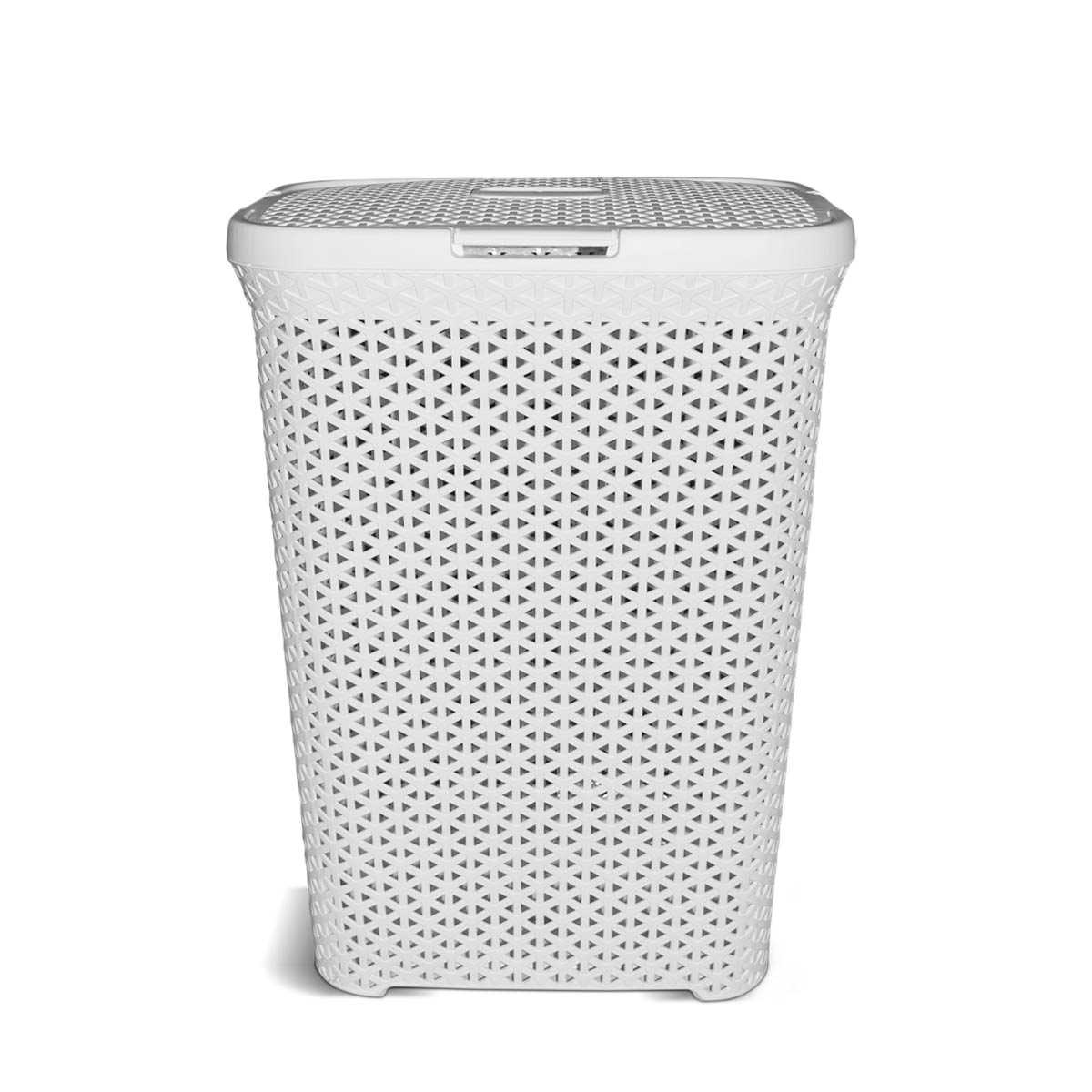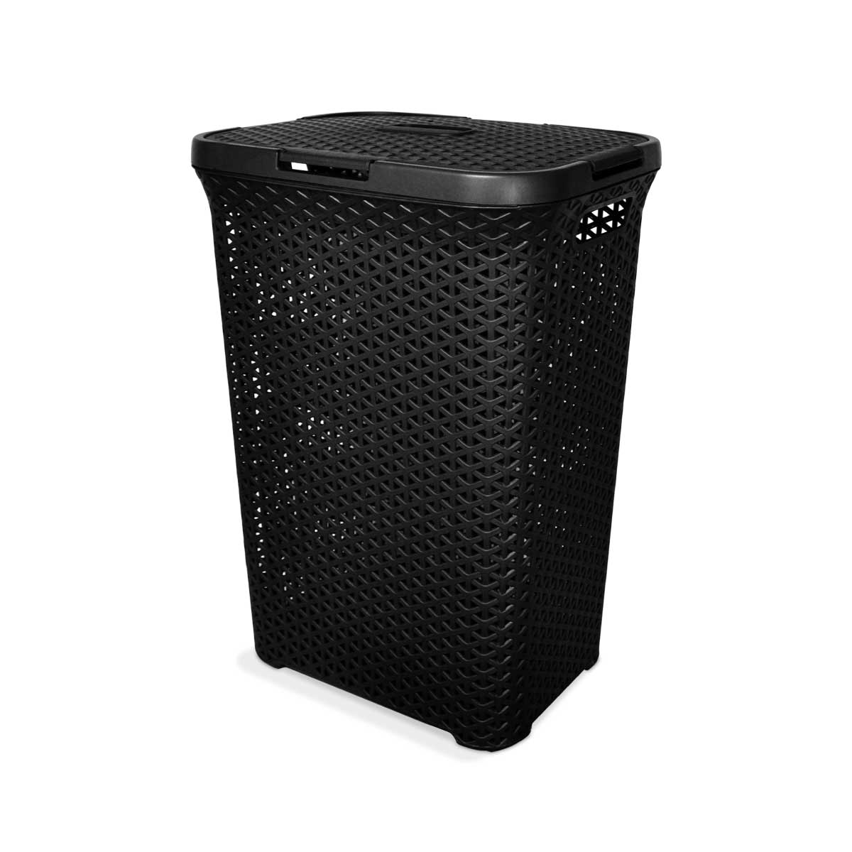 Cesto plástico simil ratán grande alto de terminación mate. Con agarres laterales. Capacidad: 65 Lts