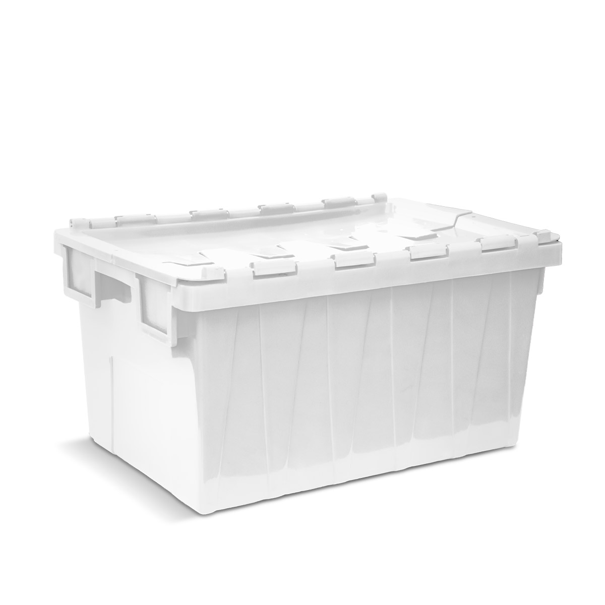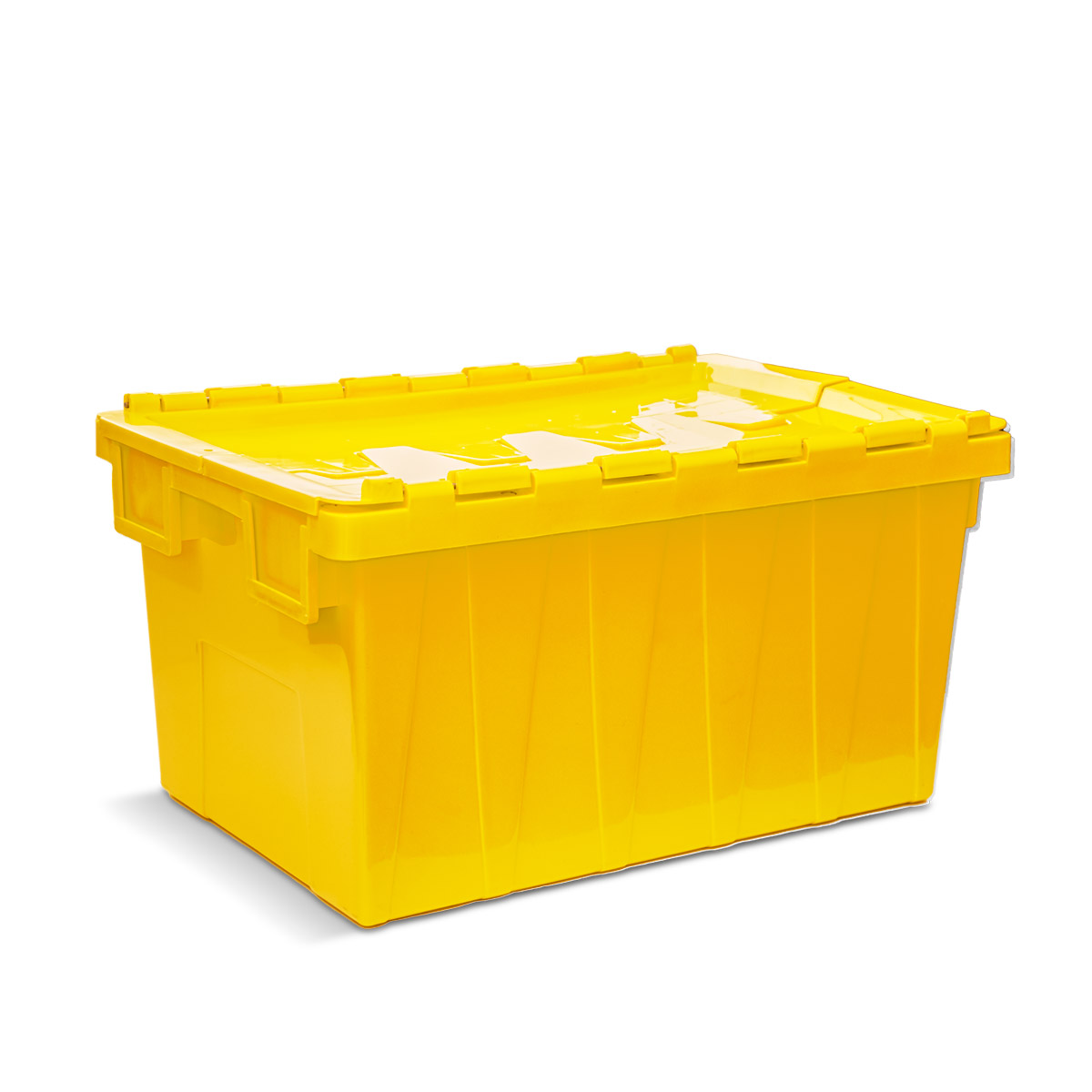 Caja con tapa con cierre entrelazable, y posibilidad de cerrar con precintos o candado para asegurar su contenido.