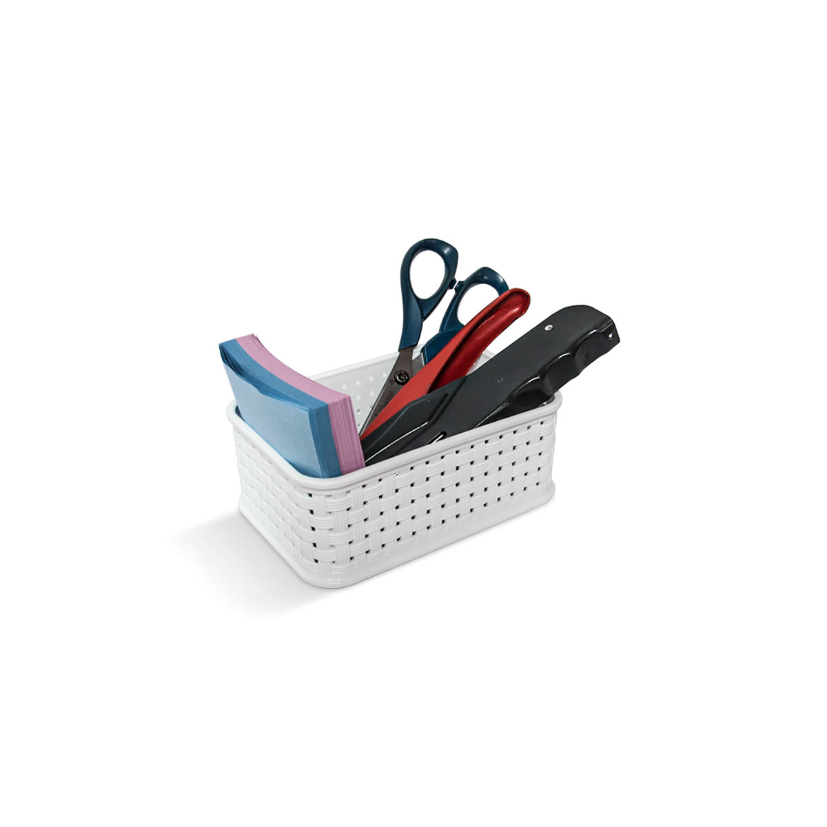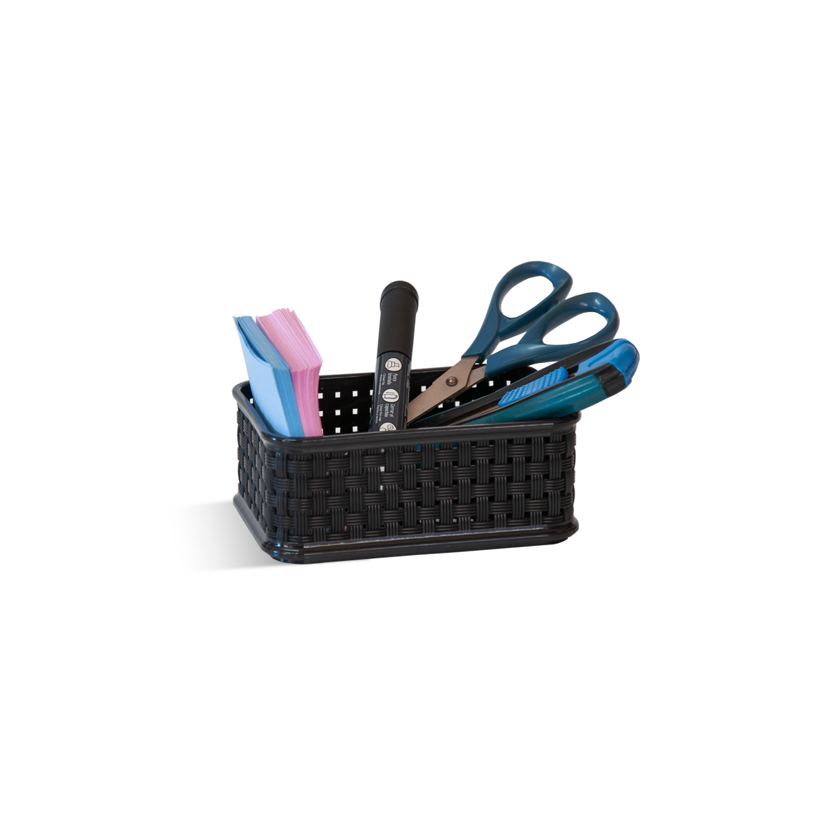 Cesto rectangular plástico simil ratán, tamaño mini.